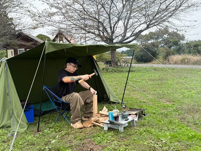 今回はスタジオの休日を利用し、横浜を拠点にご活躍されている彫けんさん、さとしさん、そして師匠と私を含めた4人で、高崎にキャンプへ出かけた際の様子を綴っていきます。