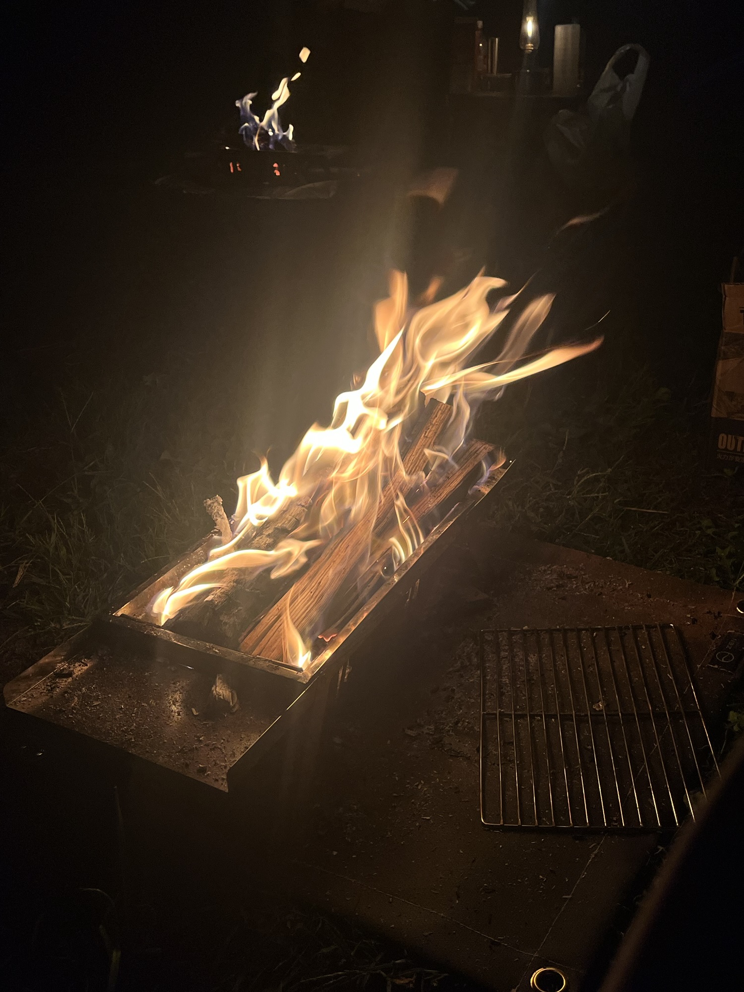 今回は焚き火台やライトも用意していたため、夜の時間も存分にキャンプを楽しむことができました。